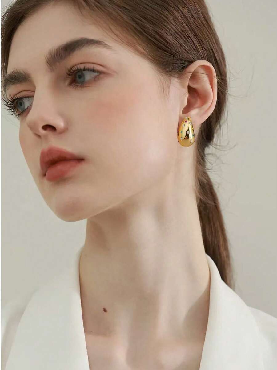 1 par de pendientes de acero inoxidable con forma de lágrima para mujeres, con colgante geométrico bañado en oro de 18k, incrustado con circonita brillante, de estilo bohemio, adecuado para uso diario, regalo de Navidad, regalo de cumpleaños