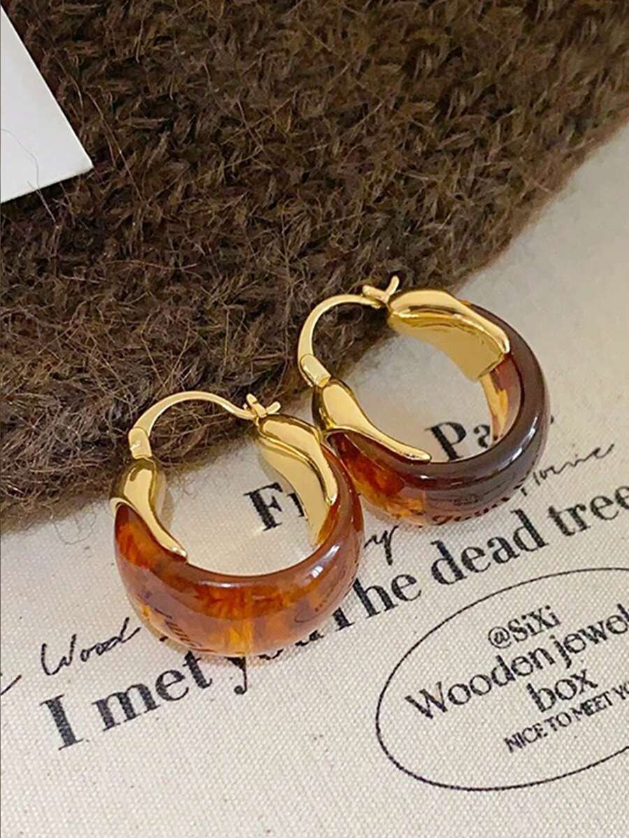 1 par de pendientes de aro de resina con diseño geométrico elegante y retro, accesorio de moda de alta gama para mujer, adecuado para uso diario, ir al trabajo y vacaciones