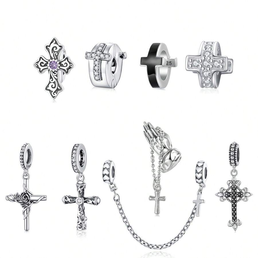 WOSTU 1 Pieza Colgante de Cruz de Plata de Ley 925 Vintage con Zirconia para Pulsera, Collar DIY, Joyería Religiosa para Mujer