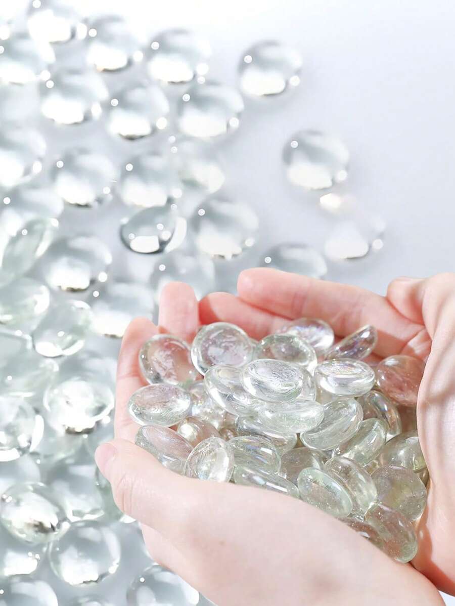 10/20/50/100 piezas Piedras de vidrio transparente, bolas de vidrio planas, piedras decorativas de vidrio transparente para manualidades DIY, decoración de mesa, acuarios, decoración floral, mosaicos, portavelas, decoración de chimeneas y hogar, decoración de jarrones y floreros
