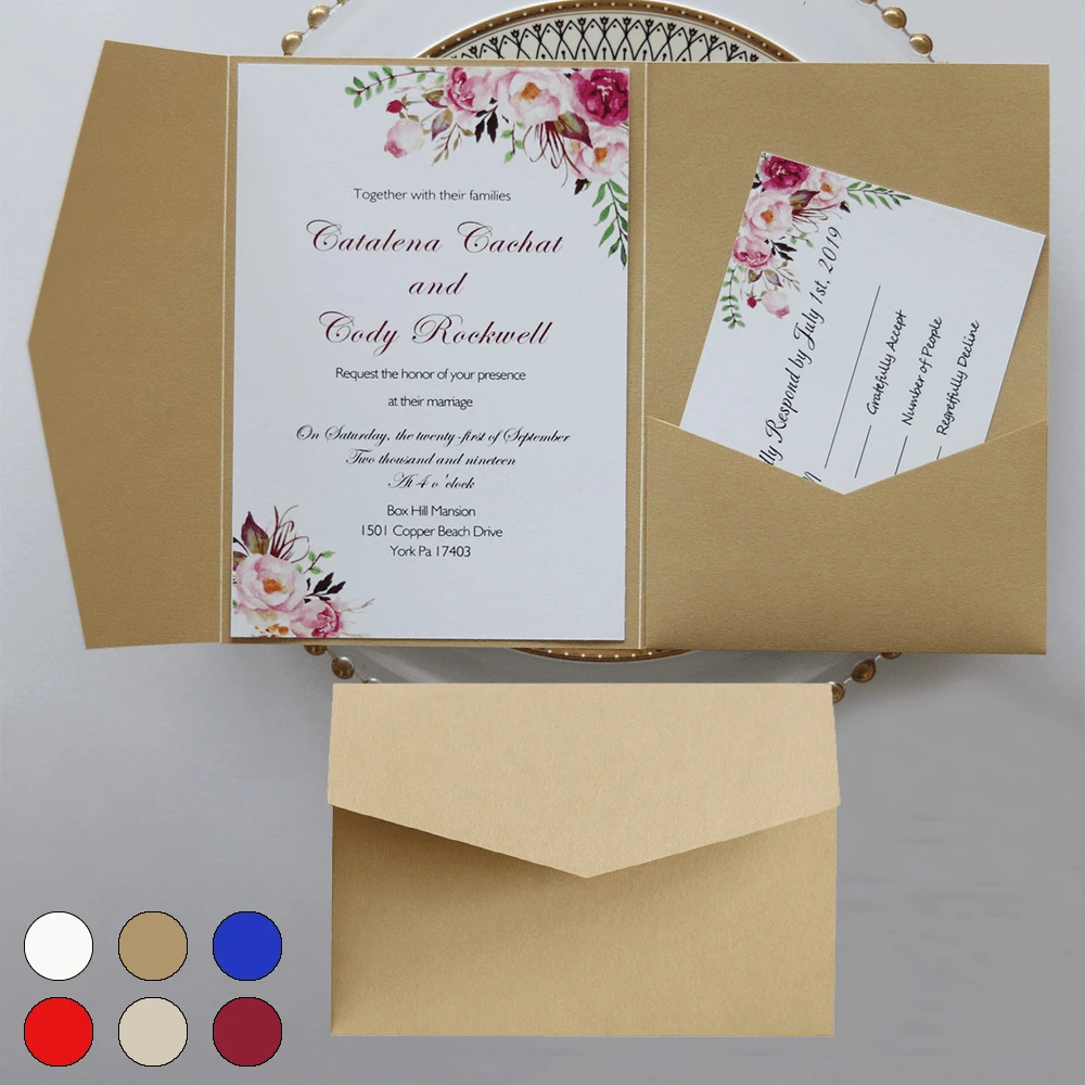 10 piezas Tarjetas de invitación perlada, tarjeta de felicitación con tercer doblez, sobres para RSVP, invitaciones de boda, tarjetas de papel dorado, para decoraciones y suministros de fiesta de boda, 15º cumpleaños, bautizo, despedida de soltera (rosa, dorado, burdeos, beige, blanco, azul marino)