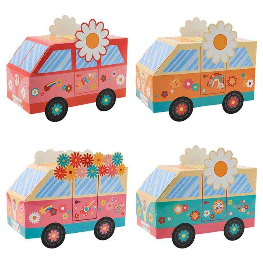 12/24 piezas Cajas de favores para fiesta con diseño retro Autobús de la paz hippie como centro de mesa - Decoraciones para fiesta de cumpleaños hippie con símbolos de paz, margaritas y arcoíris