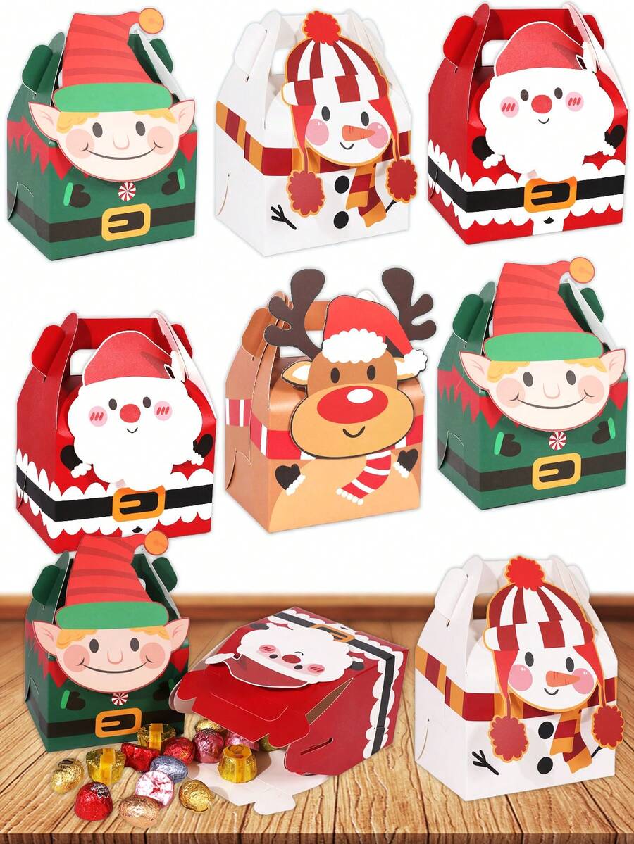 12 PIEZAS/1 PIEZA Cajas de cartón con asas para dulces navideños con estampado 3D vibrante para regalos de fiesta, dulces, chocolates y obsequios (Estilo de cabeza grande)