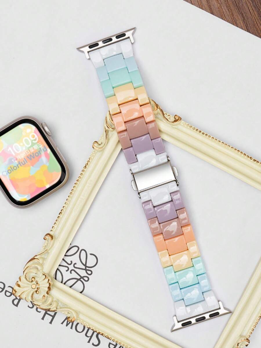 1 pieza Correa de reloj de mujer de moda, de colores, clásica y sencilla, compatible con Apple Watch de 38mm, 40mm, 41mm, 42mm, 44mm, 45mm, 46mm, 49mm, ligera y transpirable, accesorio de reloj compatible con Apple Watch Series 11, 10, 9, 8, 7, SE, 6, 5, 4, 3, 2, 1, Ultra 3/2/1, pulsera de repuesto para deportes, gimnasio, oficina, fiesta, moda