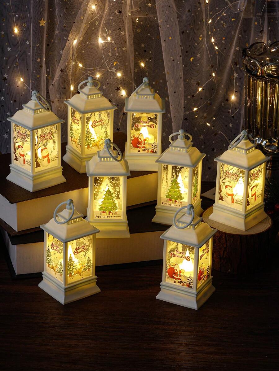 1 pieza Farol cuadrado de Navidad con LED sin llama, decoración navideña para el hogar con árbol de Navidad, Papá Noel, luz cálida con estampado navideño para escritorio, adorno de luz, decoración navideña, decoración de árbol de Navidad, regalo, decoración de Acción de Gracias, boda, hogar, otoño, cumpleaños, fiestas, interior, exterior, jardín, festivales, Halloween, decoración de pared, adornos de Halloween
