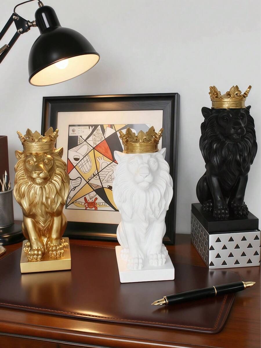 1 pieza Estatua del Rey León con corona, decoración de estilo nórdico para el hogar y el estudio, figura coleccionable, adecuada para la decoración del hogar, la decoración del dormitorio, la oficina y los estudiantes, el mejor regalo de Navidad