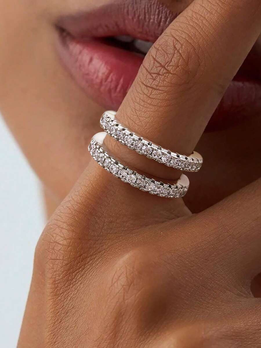 1 pieza Anillo de mujer con doble aro y diamantes incrustados de plata de ley 925, anillo delgado para el pulgar, joyería fina como regalo