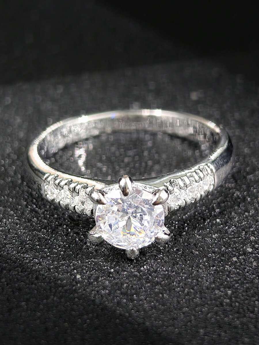 MOONSO 1 pieza Anillo de mujer elegante y romántico de moda, sólido, con 6 garras y circonita cúbica redonda incrustada, versátil para compromiso, fiesta y uso diario R524