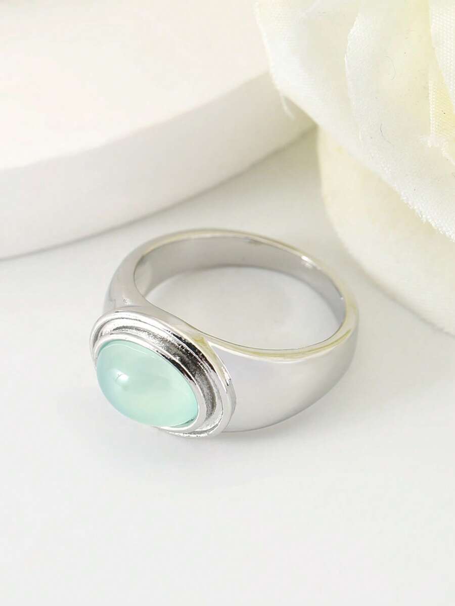 1 pieza Anillo con piedra de ojo de gato de tono doble vintage de moda chapado en oro