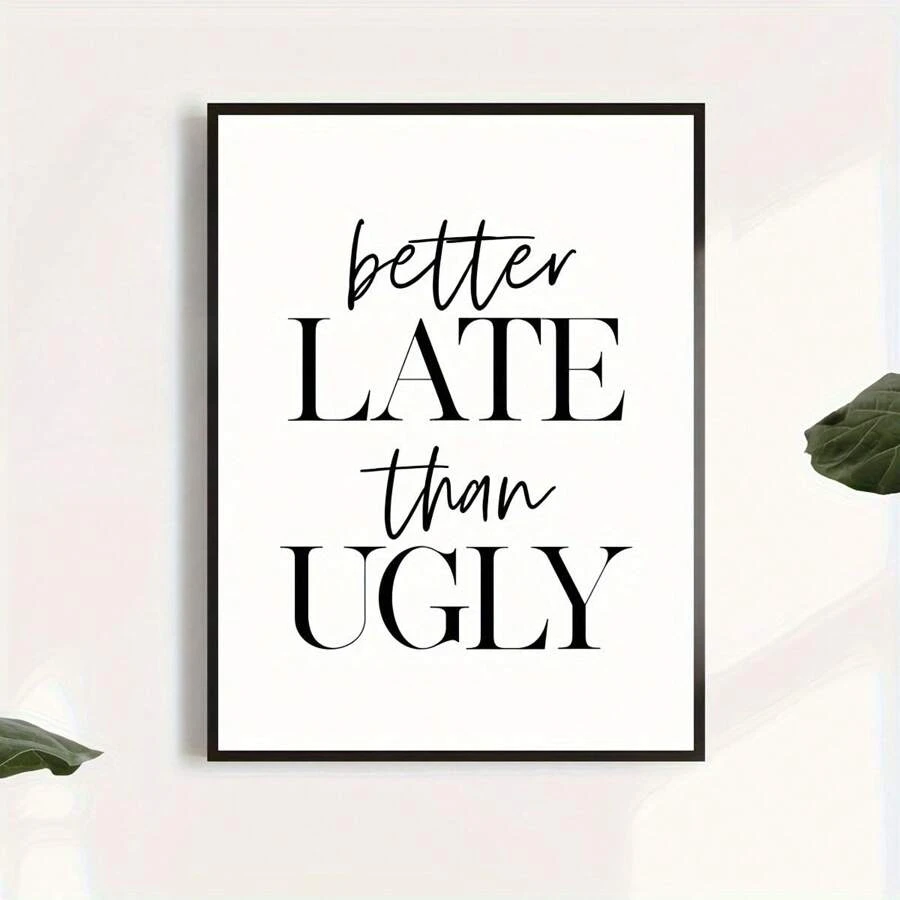 1 pieza con marco terminado, cartel de lienzo, cartel feo impreso que dice 'talla grande vale tarde que nunca', arte de pared para sala de estar impreso, decoración de pared para dormitorio, decoración de hogar para habitaciones