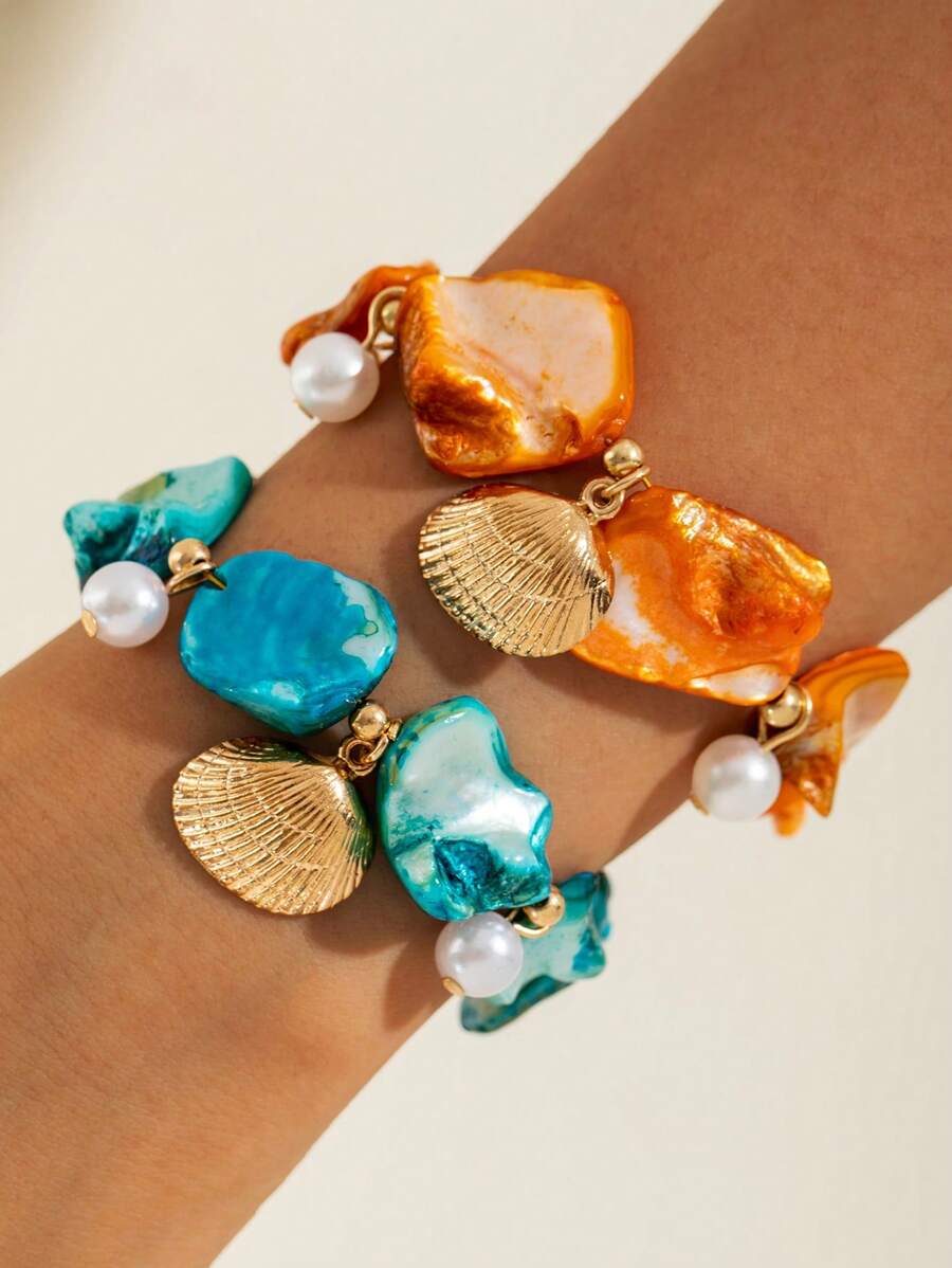 imoli 1 pieza Pulsera de estilo bohemio minimalista con colgante de perla, cruz y trébol, para mujer, regalo perfecto para playa, viajes y vacaciones (teñido artificialmente, puede tener un ligero desvanecimiento del color)