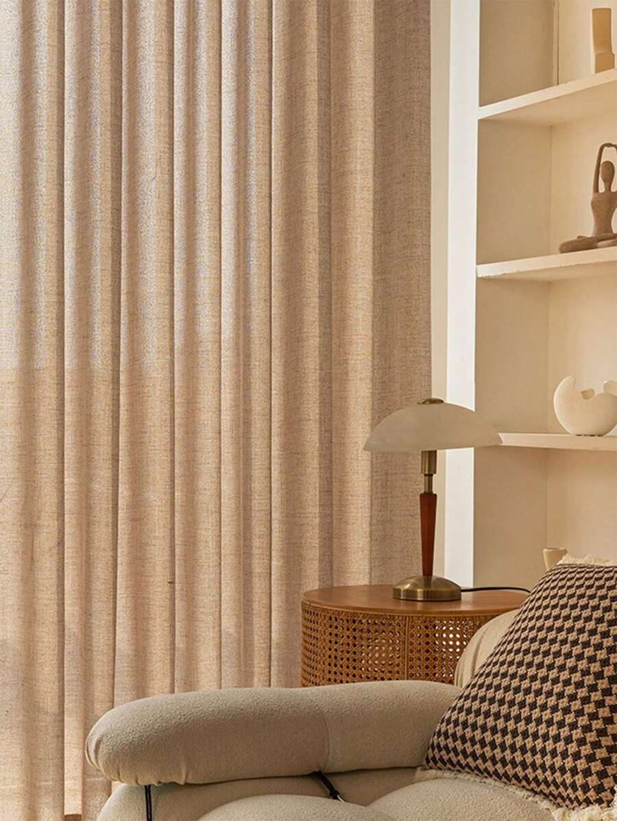 1 pieza de Cortina de mezcla de lino de estilo japonés de color natural, que filtra la luz y bloquea algo de luz. Proporciona un buen plisado y realza el espacio de vida. Fácil instalación, adecuada para dormitorio, sala de estar, lavandería, patio y habitación infantil para la mayoría de la decoración del hogar.