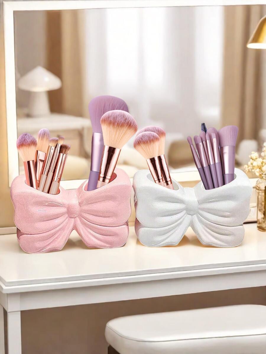 1 pieza Estante de almacenamiento de cosméticos con forma de lazo estilo nórdico, estante de almacenamiento de cepillos de dientes, decorativo para escritorio en el hogar, decoración estética para la habitación, decoración del hogar, ahorro de espacio, accesorios para cocina, baño, dormitorio, para vacaciones, playa, colección de baño, colección de dormitorio, gran capacidad