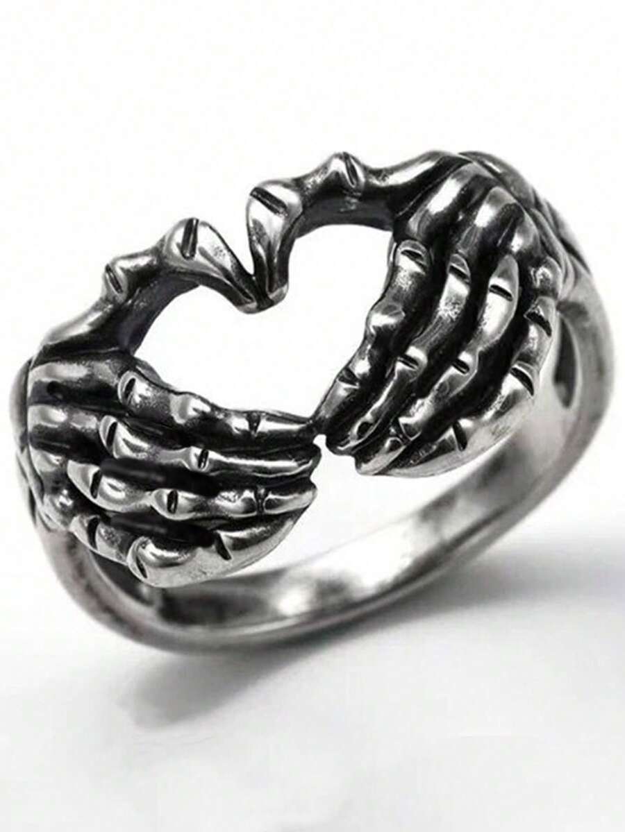 1 pieza Anillo de mano con gesto de corazón vintage, anillo sello unisex con combinación de mano de calavera, anillo personalizado único de alta gama