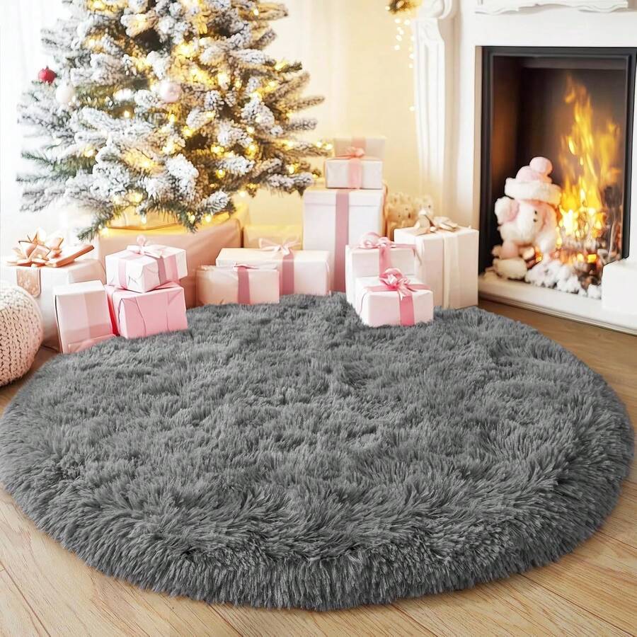 1 pieza Alfombra redonda ultra suave y esponjosa para usar en otoño e invierno, alfombra redonda para tienda de campaña de princesa, alfombra redonda para dormitorio, alfombra esponjosa y linda para habitación de niñas, alfombra de felpa esponjosa para habitación de niños, tienda de campaña, castillo, decoración del hogar, lavable a máquina, resistente a la decoloración, tacto suave, alfombra mullida para sala de estar, dormitorio, decoración de habitación, alfombra de acento, revestimiento de piso y talla grande.