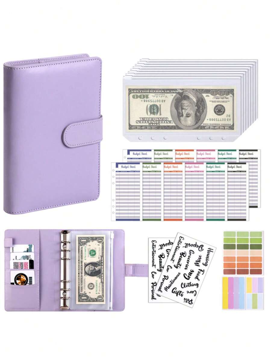 1 set Carpeta de presupuesto de piel sintética A6 para ahorrar dinero, con 12 hojas de presupuesto, organizador financiero portátil para flujo de efectivo, presupuestación y gestión del dinero, libro de presupuesto