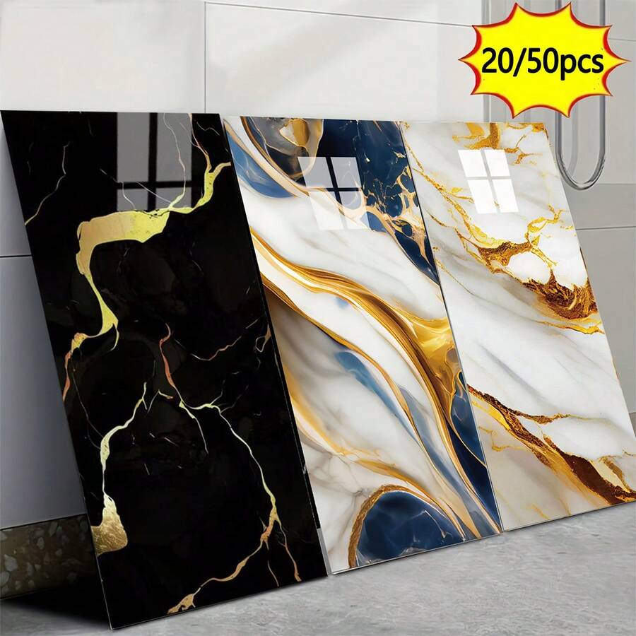 20/50 piezas Cycleader Baldosas de vinilo adhesivas con efecto mármol europeo de lujo, fáciles de limpiar, impermeables y removibles para decorar la cocina, el baño y el dormitorio