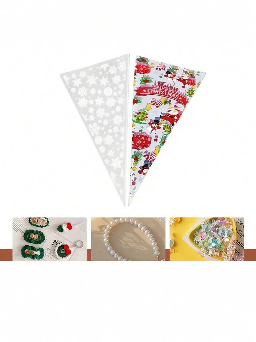 20 piezas Bolsas de cono de caramelo navideño, bolsas de regalo con elementos navideños, adecuadas para bolsas de regalo festivas, embalaje de caramelos triangulares, caramelos, galletas, alimentos navideños, suministros de embalaje de regalos de oficina, decoración del ambiente navideño