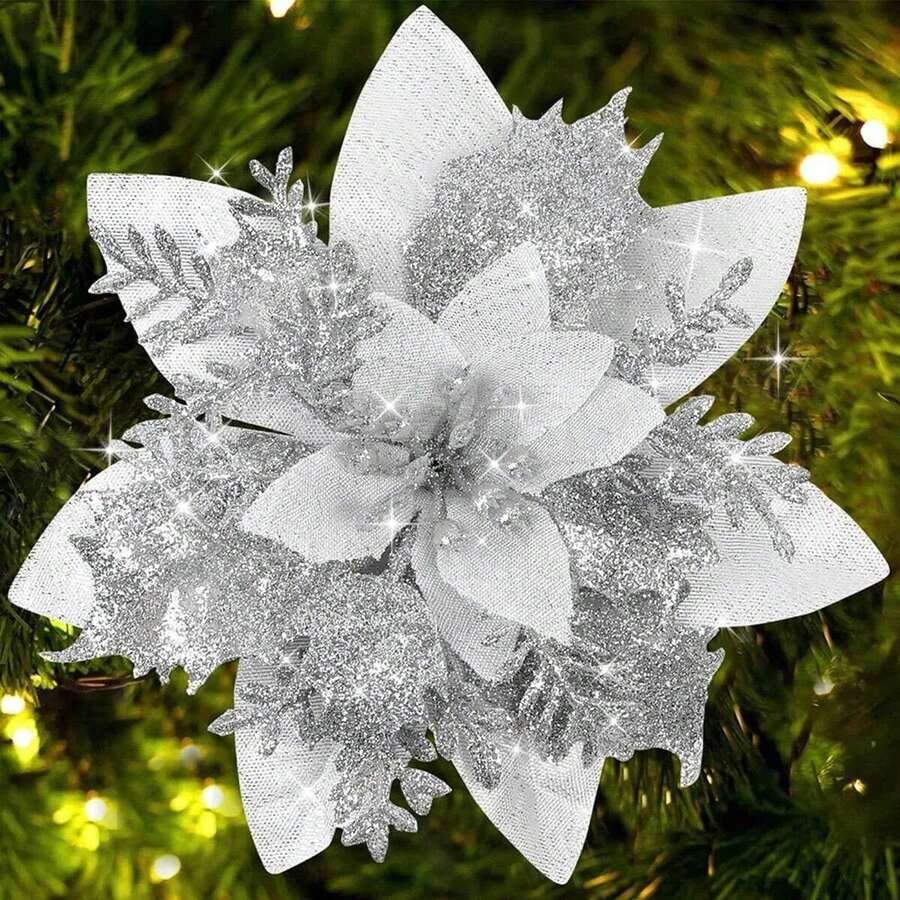20 piezas/10 piezas/2 piezas Flor de Pascua artificial multicolor, decoraciones de árbol de Navidad con flores de Pascua, flores de Pascua con malla hueca brillante, decoraciones navideñas, accesorios festivos, árbol de Navidad, corona, adornos de árbol de Navidad con flores de Pascua brillantes, decoración navideña DIY corona de flores de Pascua, decoraciones de fiesta Navidad Decoración 2025 Decoración de Navidad 2025