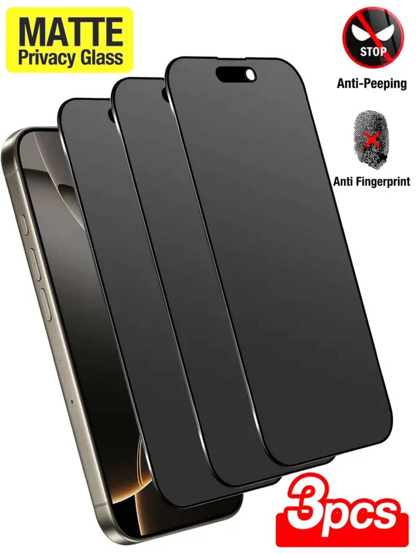 3 piezas Protector de pantalla de vidrio templado mate anti-espionaje, dureza 9H, cobertura completa, anti-huellas dactilares, anti-caídas, anti-arañazos, protección de privacidad, tacto delicado, compatible con iPhone 17 Pro Max/17 Pro/17 Air/17/16 Pro Max/16 Pro/16 Plus/16e/16/15 Pro Max/14 Pro Max/13 Mini/12/11/XS MAX/XR Series