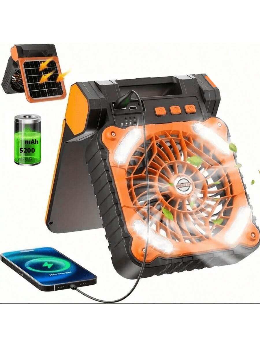 Ventilador solar de 5200mAh, ventilador de camping con panel solar, ventilador portátil para exteriores, linterna LED, ventilador silencioso con batería para picnic, barbacoa, pesca, viaje