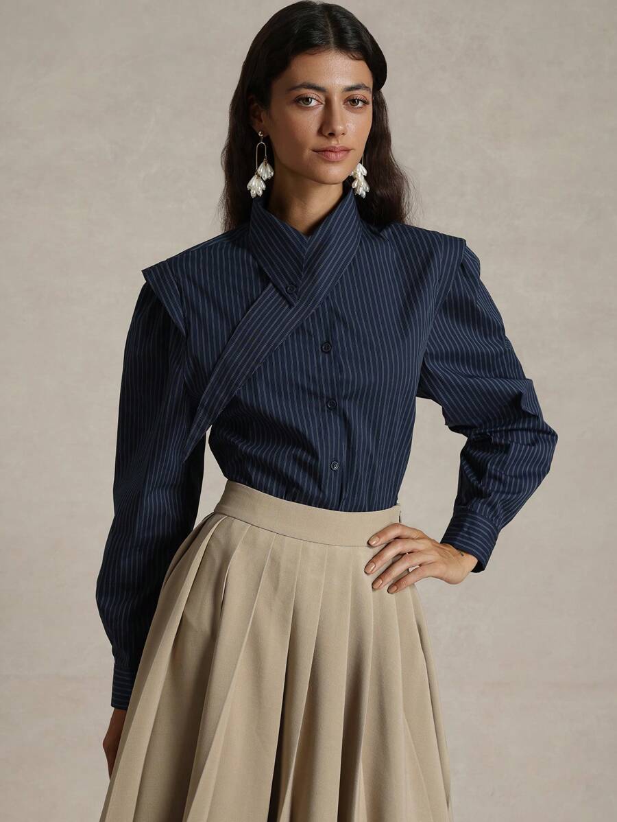 Briarwyn Camisa de mujer de manga larga a rayas con cuello asimétrico, conjunto de ropa de verano elegante para mujeres