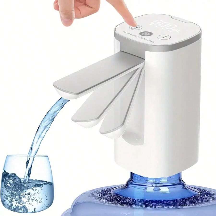 Dispensador de agua automático para botellas de 5 galones - Apagado automático, batería de 1200mAh, pico plegable, función táctil, pantalla LED inteligente, USB C, funcionamiento silencioso, bomba portátil para botellas de agua (Blanco)