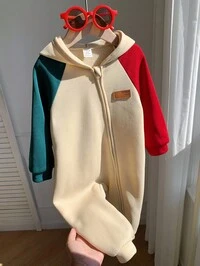 PipplinSHEIN Pelele con capucha de dinosaurio de color verde neón en contraste, forrado térmicamente, para bebés niños. Cómodo, casual y elegante para usar a diario, adecuado para interiores, exteriores, esquí, uso diario, deportes, fiestas, sesiones de fotos, festivales, ropa de calle, Navidad, Año Nuevo