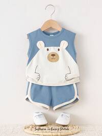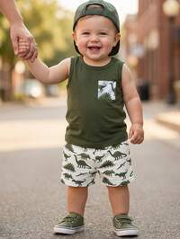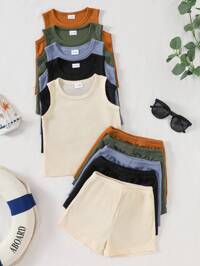 Vintaside KidsSHEIN Vintaside Kids 10 piezas Conjunto de ropa para niño bebé, incluye 5 tops de punto acanalado sin mangas en caqui, azul grisáceo, verde militar, marrón y negro, y 5 pantalones cortos a juego de punto acanalado con cintura elástica, adecuado para primavera/verano, deportes al aire libre, uso casual, para niños de 6 meses a 2-3 años. Conjuntos de ropa para bebé niño, ropa de verano para bebé niño, ropa neutra para bebé unisex