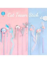 PETSINJuguetes para gatos, set de juguetes para mascotas, plumas artificiales de colores, caña de pescar, campana de oruga, palo de juego con cabeza reemplazable, se puede usar en interiores y exteriores, para entrenamiento, autoescucha, aliviar el aburrimiento (azul, negro. El color de la cabeza de repuesto es aleatorio). Juguetes para gatos con colibri, Caña de pescar como juguete para gatos, Juguetes para gatos de interior, Juguetes para gatitos, Juguete vara para gatos, Telescópico de 3 secciones con longitud máxima de 180cm/70.8 pulgadas, Juguetes para gatos adultos de interior aburridos, Vara de pesca como juguete para gatos, Juguete de pluma artificial para gatos, Juguete interactivo para gatos, Accesorios para gatos