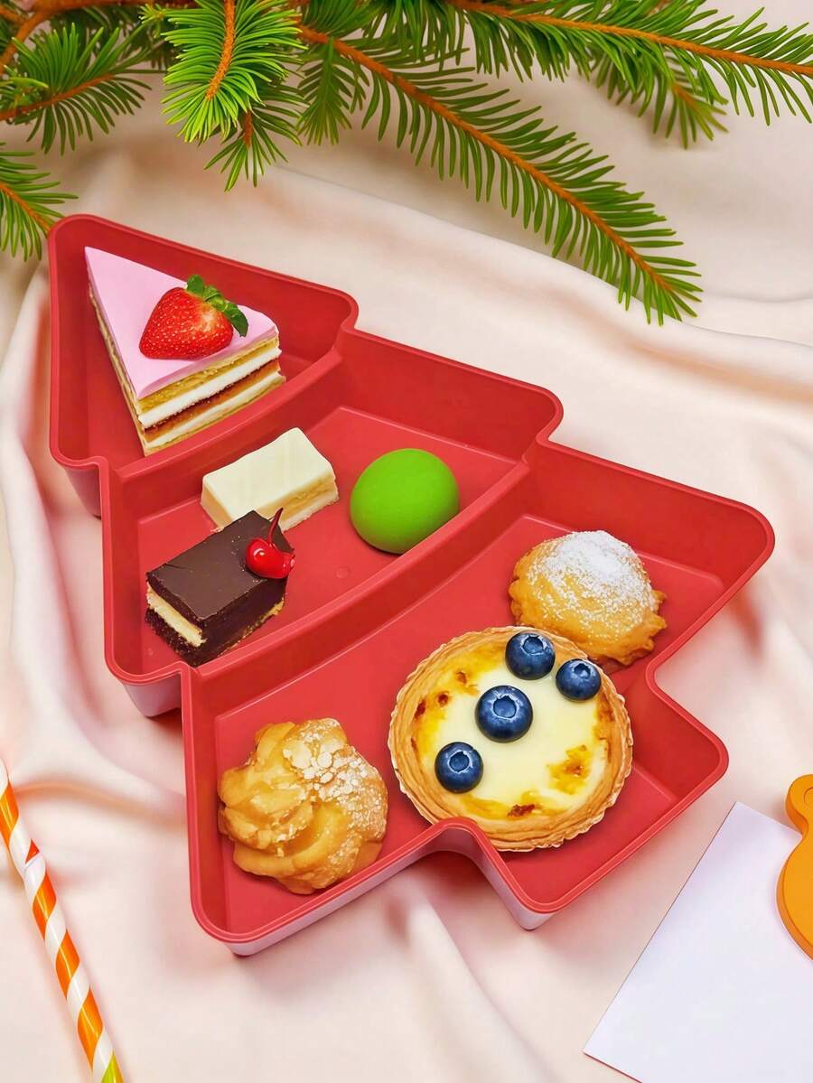 Bandeja multicompartimento con forma de árbol de Navidad para servir frutos secos, aperitivos y dulces, adecuada para servir alimentos, aperitivos, bebidas, sushi, pizza, postres, pasteles y pan, bandeja de desayuno, bandeja de café, bandeja de té, bandeja de delicatessen, menaje de cocina del hogar, bandeja de servir reutilizable con ambiente navideño, 1 pieza