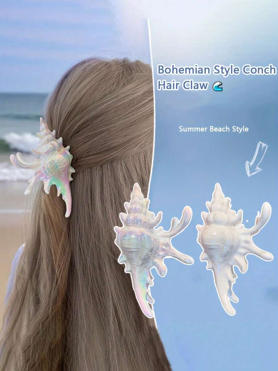 Pinza para el cabello con conchas marinas de colores, accesorio para el cabello de gran tamaño y antideslizante con estilo oceánico para vacaciones en la playa, elegante accesorio para el cabello tipo garra para mujeres, accesorio para peinado de ola oceánica semi-recogido para vacaciones en la playa, pasador de estilo bohemio, dulce y elegante de moda para mujeres