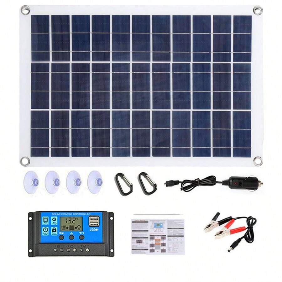 DAINUO 60W Panel solar exterior para acampar, senderismo, pesca en el mar, ciclismo, teléfono móvil, linterna, almacenamiento - 1 juego