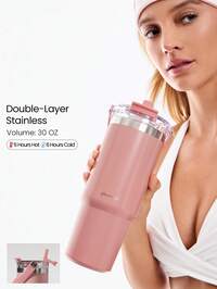 GLOWMODEGLOWMODE 30 OZ Vaso de acero inoxidable con doble aislamiento, resistente a los arañazos, con pajita abatible, asa portátil para bebidas, para gimnasio, estudio, viajes, senderismo, oficina, exteriores, actividades diarias y casual