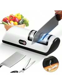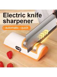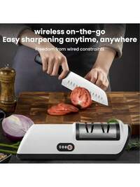 Afilador de cuchillos eléctrico recargable USB profesional, afilador de 2 etapas con abrasivos de diamante para filo recto de 20 grados, afilador de cuchillos para cuchillos de cocina con afilado y pulido, adecuado para varios tipos de cuchillos de hoja recta (cuchillos de chef, cuchillos de trinchar, cuchillos Santoku, cuchillos de pelar, etc.), navajas de bolsillo, cuchillos de cerámica, etc.