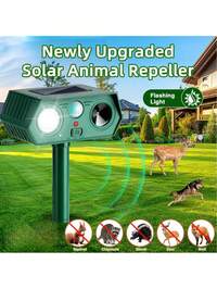 YZ-QUANRepelente de animales alimentado por energía solar de 1200 mAh con luz LED intermitente y sensor de movimiento - Tecnología ultrasónica para repeler mosquitos, insectos, roedores, adecuado para el control de plagas en el patio, jardín, granja, disuasor de ciervos, mapaches, ardillas, conejos, zorros y osos