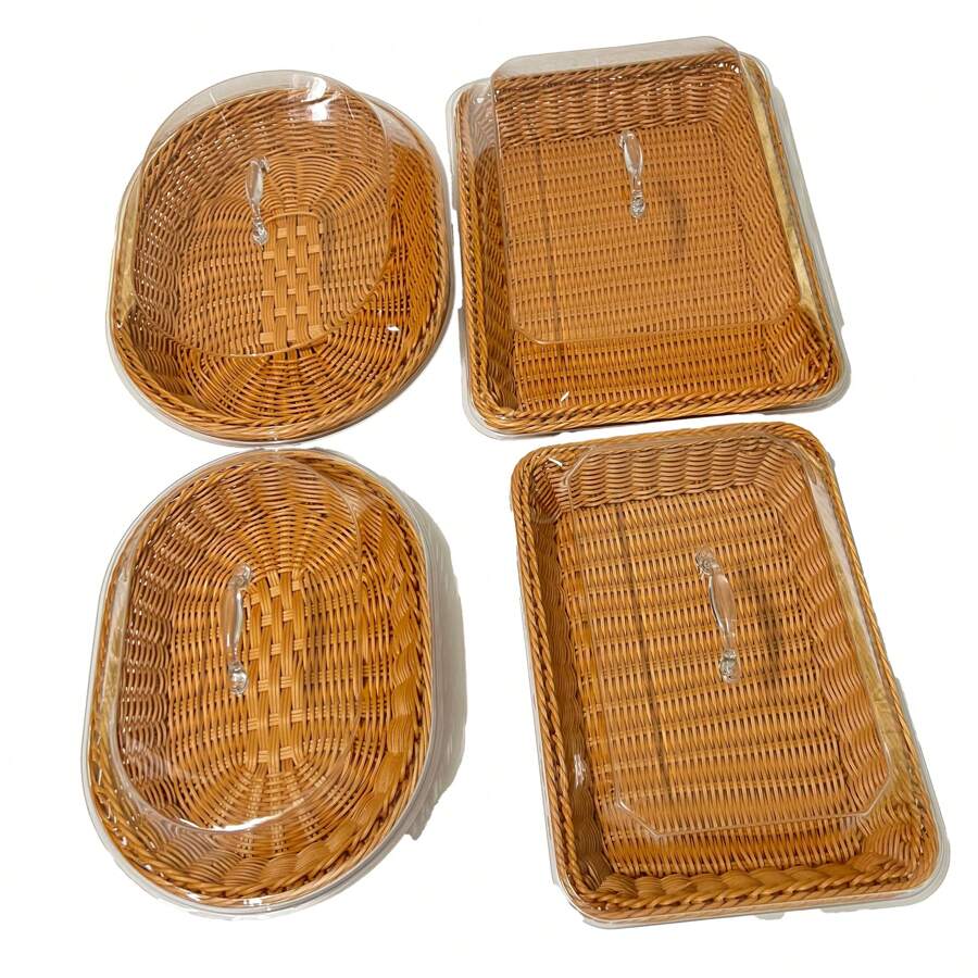 Cesta de pan de mimbre Faridabio con tapa de acrílico transparente - Bandeja de alimentos duradera y lavable para postres y frutas - Perfecta para la cocina, el picnic y la exhibición en el hogar, el embalaje de cartón duro reduce el riesgo de daños