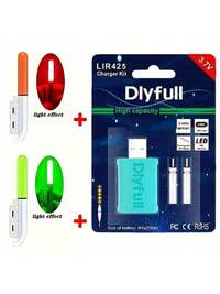 2 Piezas de cargadores flotantes y de doble agujero y 2 paquetes de baterías recargables - Cargador USB para varilla de pesca electrónica con luz de flotador iluminada, recargable CR425 LIR425 batería de litio de 3.6V para equipo de pesca nocturna