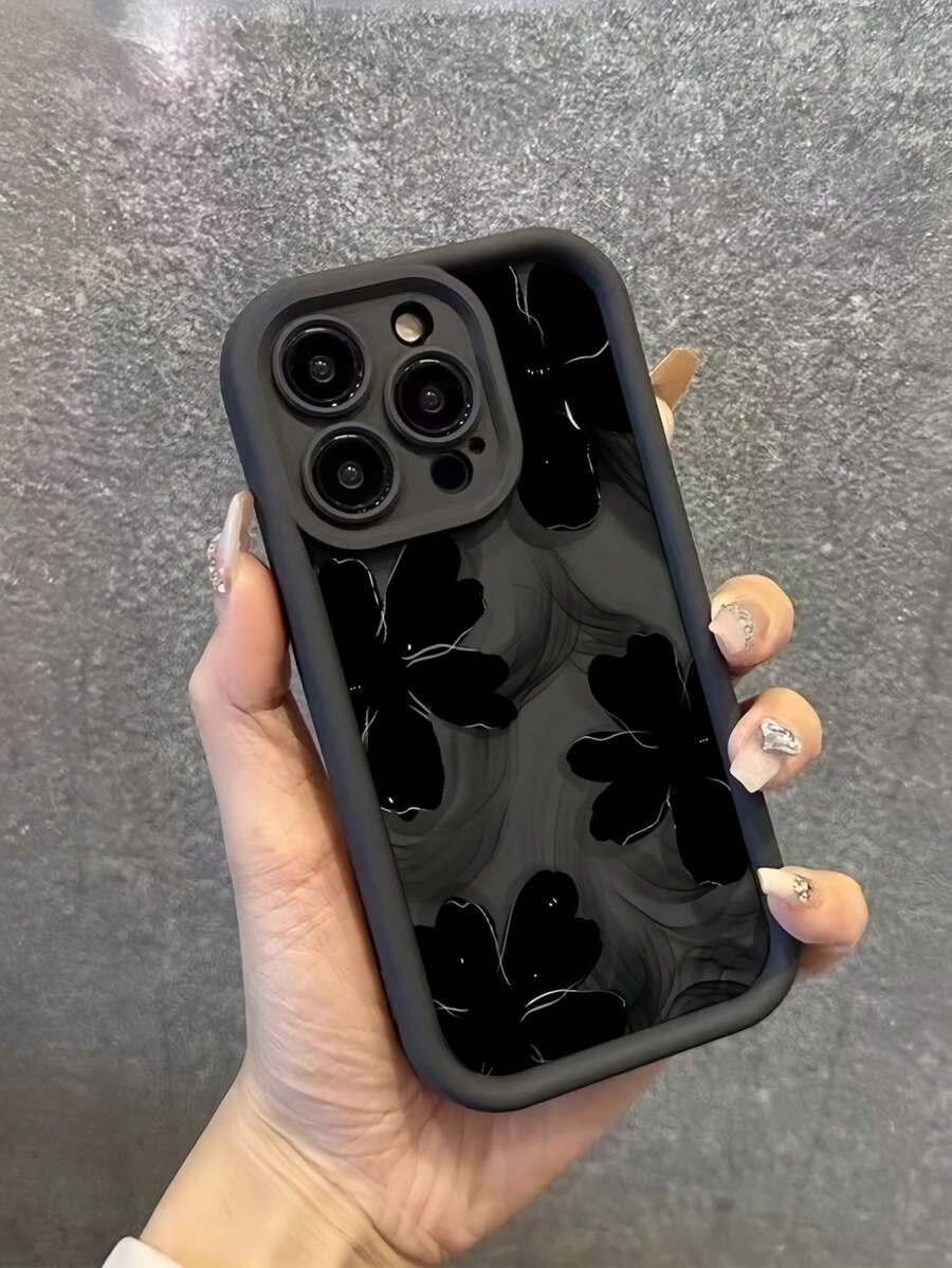 1 pieza Funda protectora de teléfono con patrón de flores pintadas de tacto suave y cobertura completa, resistente a caídas, de moda, compatible con iPhone 16, 15, 14, 13, 12, 11 Pro Max, A55/54/53/52/51, S24/23/22/21 Ultra, unisex