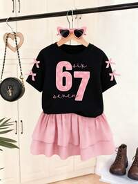 HappikinsSHEIN 3 piezas Camisetas de manga corta de cuello redondo, de uso diario, para el hogar, vacaciones, en capas, cómodas y con estilo, con estampados florales, ideales para otoño y invierno, en colores crema, rayas marrones y flores marrones, para chicas jóvenes
