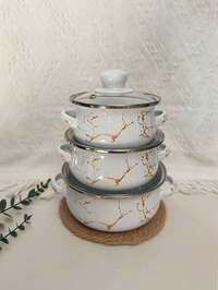 Juego de 3 piezas de cacerolas con revestimiento esmaltado multicolor, olla pequeña para gachas, leche, sopa, fideos, apta para placa de inducción y cocina de gas