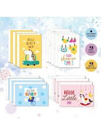 Set de 12 tarjetas de felicitación para bebé, de 5.9*7.8 pulgadas, con patrones de dibujos animados, que incluye 12 tarjetas de diseños diferentes y 12 sobres. Adecuado para celebraciones de recién nacidos, fiestas de revelación de género, decoración de fotos de bebé, tarjetas de felicitación, regalos de cumpleaños/fiestas, suministros para fiestas, decoración del hogar, al por mayor10 Set de Tarjetas de Agradecimiento con Tema de Bebé, Tarjetas de Felicitación con Frases Cortas Divertidas, Tarjetas de Dibujos Animados de Animales Humorísticas, 10 Tarjetas de Agradecimiento + 10 Sobres Azules + 1 Pegatina de Sellado, Perfectas para Papá, Mamá, Hermanos, Hermanas o Cualquier Persona que Ames, Temporada de Regalos, Tarjetas Inspiradoras de Acuarela, Suministros de Oficina