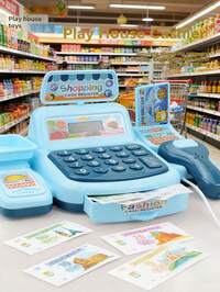 Juego de supermercado para niños - Incluye caja registradora de juguete, café realista, postres, bebidas, escaneado y pago con tarjeta, juego de roles para simular compras en el supermercado, juguetes de matemáticas y educación temprana, juguetes de otoño para niños, estación de comida rápida y pizza en miniatura, juguetes de aprendizaje interactivo para niños y niñas (requiere 2 pilas AA y 2 pilas AAA, no incluidas) Juguete interactivo de caja registradora de supermercado, juego de simulación de mini caja registradora con moneda del juego y accesorios, juego de juego de roles, escáner, con efectos de sonido y luz. Juegos educativos de roles, regalos para fiestas, regalos de cumpleaños, supermercados para niños, cajas registradoras de supermercado, mini supermercados, pasteles de crema, postres de helado