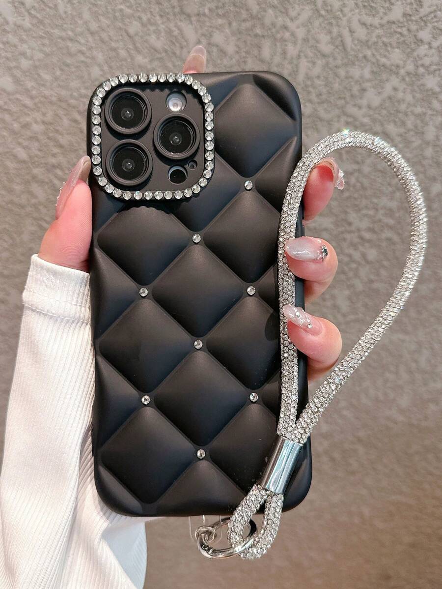 Funda de teléfono transparente de lujo con correa de muñeca con rhinestones, adecuada para iPhone 17 Pro Max/17 Pro/17 Air/17/16 Pro Max/16/16 Pro/16 Plus/16e/15/15 Pro Max/15 Pro/15 Plus/11/12/13/14 Pro Max/11 Pro/11 Pro Max/12 Pro/12 Pro Max/13 Pro/13 Pro Max/7 Plus/14 Pro/14 Pro Max/14 Plus, funda suave minimalista y creativa en color blanco