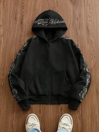 PAVTROS PAVTROS Manfinity Streetrush Sombrero de estilo callejero popular INS para hombres con texto bordado a mano, patrón de camuflaje deshilachado, adecuado para festivales de música al aire libre, discotecas, bares, regalo para novio/esposo, regalo de aniversario, sudadera con capucha de felpa, ropa urbana, chándal, cálido invierno, Navidad