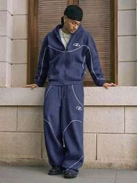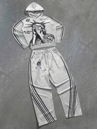 PAVTROS Conjunto de sudadera con capucha y pantalones de estilo callejero Manfinity Streetrush para hombres, con cintura con cordón y dobladillo con cremallera, bordado "Freedom", adecuado para festivales de música al aire libre, discotecas, regalo para novio/esposo, regalo de aniversario, color gris claro, conjunto de chándal para hombres, conjunto de sudadera con capucha y pantalones de chándal, chándal de diseñador, estilo de los años 2000, ropa de otoño