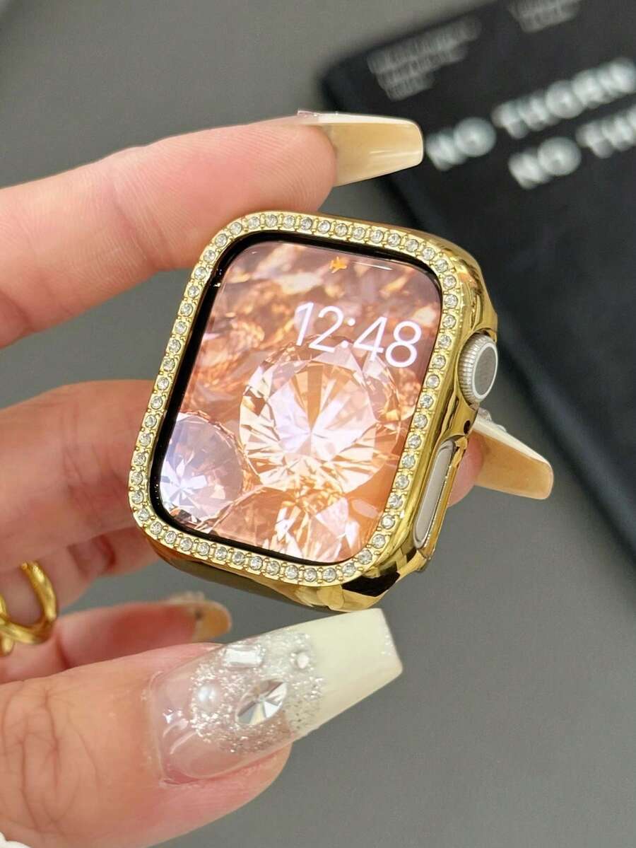 Funda protectora con cristales y diamantes de imitación para hombres y mujeres, 1 pieza de carcasa dura de PC ultra hueca compatible con Apple Watch de 40/41/42/44/45/46/49mm, para Apple Watch Series Ultra/SE/11/10/9/8/7/6/5/4, accesorios de carcasa de reloj inteligente, color dorado
