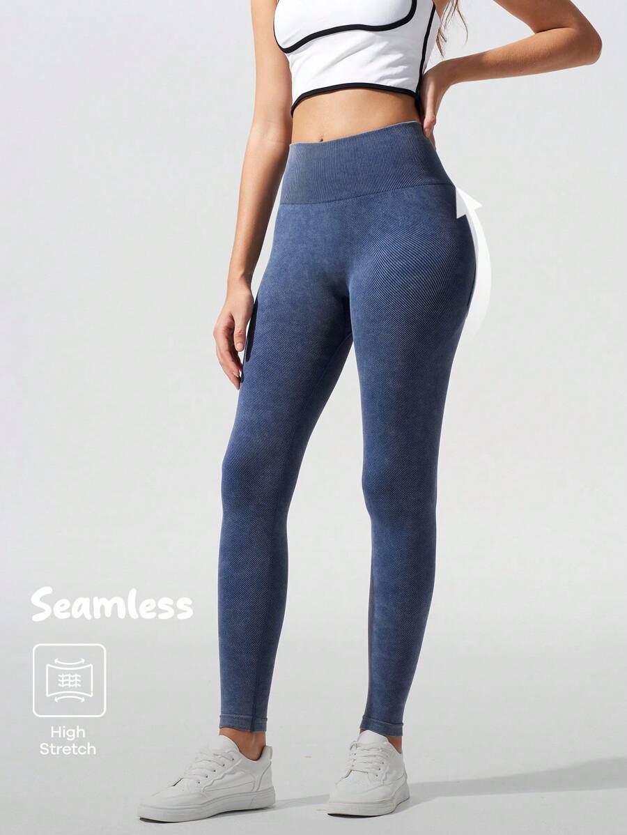 Fluxe Mallas deportivas de cintura alta ajustada de un solo color de punto para mujer