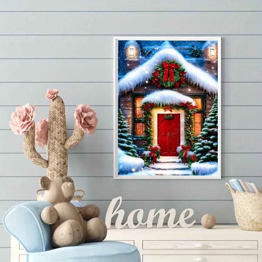 1 pieza Nuevo Llegada Kit de Pintura de Diamantes con Tema Navideño para Decoración del Hogar, Mosaico de Diamantes de Cristal 5D Redondo DIY, Adecuado para Decoración de Pared del Hogar, Regalo Hecho a Mano de Halloween y Navidad, Sin Marco