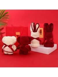 1/4 Pajarita Oso de Peluche y Conejo Rojo y Blanco, Bufanda a Cuadros de Piña, Lindo y Festivo, Material de Felpa Coral, Cinta Oso de Peluche y Conejo, Adecuado para Varios Festivales, Bodas, Celebraciones de Tiendas, Regalos, Cumpleaños, Cocina, Limpieza, Todas las Estaciones